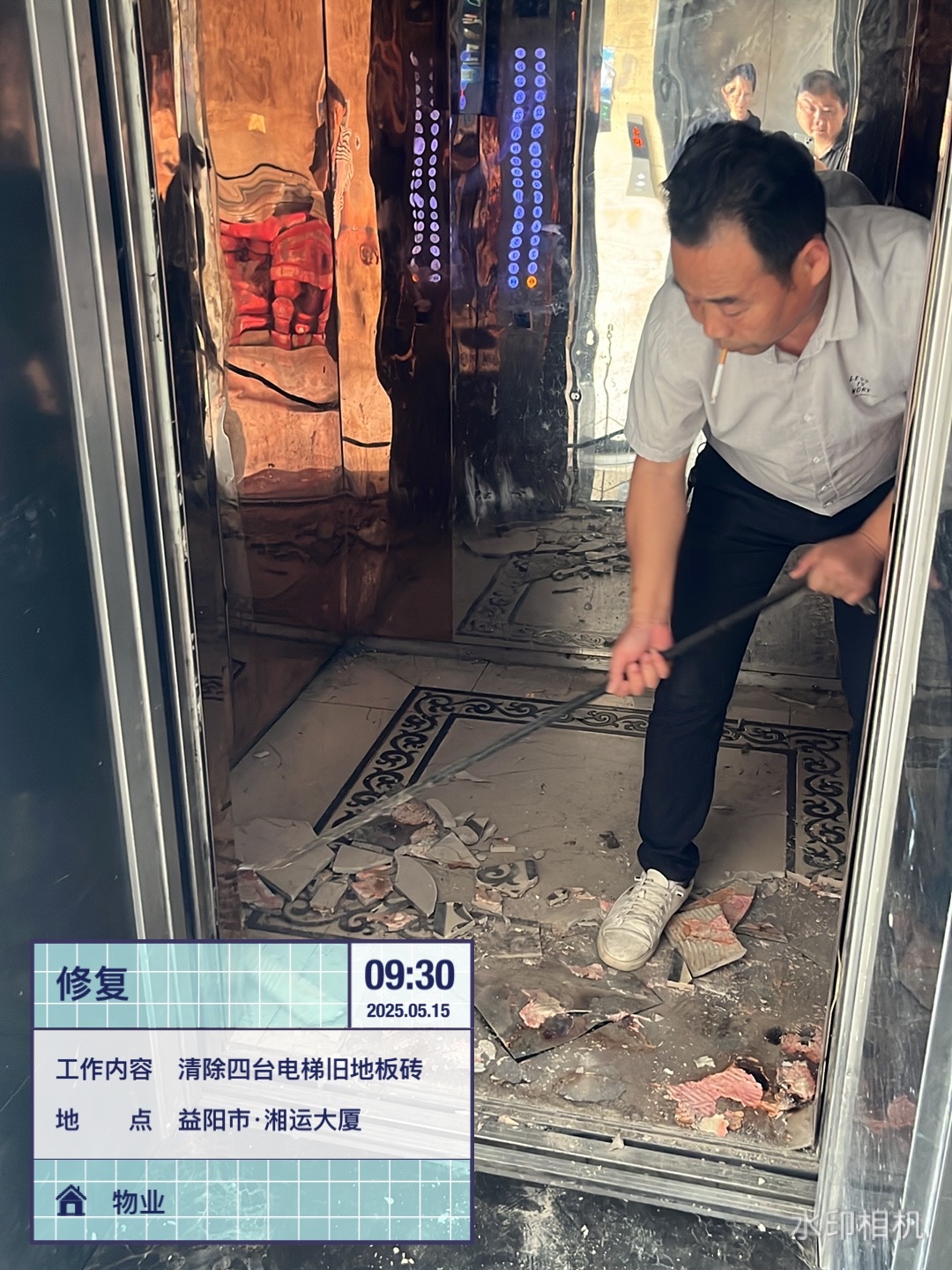 為優(yōu)化湘運(yùn)大廈公共設(shè)施,提升用戶出行安全性與舒適度。5月15日,湖南遠(yuǎn)程建設(shè)集團(tuán)有限公司物業(yè)部按經(jīng)理周琦順要求,對(duì)大廈內(nèi)電梯設(shè)施啟動(dòng)專項(xiàng)改造工程,對(duì)三臺(tái)客梯及一臺(tái)貨梯的陳舊底板進(jìn)行全面更換。改造前,在副經(jīng)理潘宇文與新裝酒店施工方商討對(duì)接后,確定由公司物業(yè)工程人員完成舊底板的拆除清理,由酒店方鋪設(shè)全新耐磨地板的方案,同時(shí)創(chuàng)新采用"半覆蓋木板"防護(hù)措施,有效降低裝修材料運(yùn)輸對(duì)地面的磨損。針對(duì)實(shí)施過(guò)程中樓內(nèi)裝修施工頻繁的情況,辦公室還特別強(qiáng)調(diào)在每部電梯新增半塊可拆卸木板,既保護(hù)新底板免受建材刮擦,又不影響日常使用便利性。(郭燦燦)